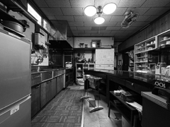 古い照明器具、建具、ガラス、家具の一部を新しい空間に組み込み、歴史の手触りを継承。